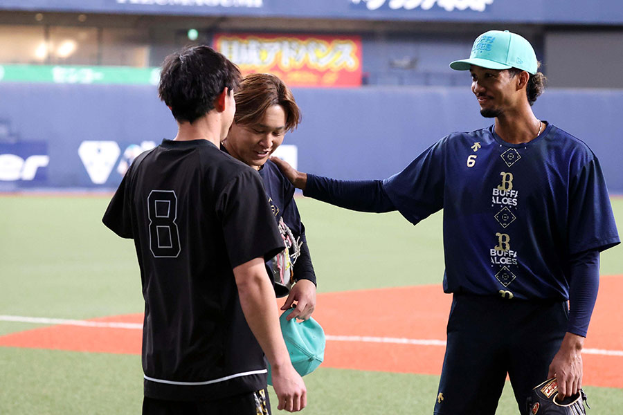 オリ宮城、死球当てた牧原大に謝罪 患部にはテーピング…歩み寄り頭を下げる オリックス・バファローズ 2025.07.10 【実際の様子】死球を謝罪する宮城…テーピングが巻かれた牧原は肩を叩いて慰める 【実際の様子】死球を謝罪する宮城…テーピングが巻かれた牧原は肩を叩いて慰める【写真:栗木一考】 (Full-Count編集部) この画像の記事を読む 1 2 RECOMMEND オススメ記事 KEYWORD 注目のタグ #ファイターズガール #新庄剛志 #戦力外通告 #周東佑京 #牧原大成 #近藤健介 #中嶋聡 #稲葉篤紀 #宮城大弥 #伊藤大海 #杉本裕太郎 #新人王 #ハニーズ #BsGirls #マスコット CATEGORY 関連カテゴリ一 東北楽天ゴールデンイーグルス 埼玉西武ライオンズ 千葉ロッテマリーンズ オリックス・バファローズ 福岡ソフトバンクホークス 北海道日本ハムファイターズ 浅村栄斗 鈴木大地 源田壮亮 藤原恭大 澤村拓一 平野佳寿 吉田輝星 森友哉 山川穂高 柳田悠岐 今宮健太 有原航平 上沢直之 清宮幸太郎 新庄剛志 RANKING 1 前田健太、広島から「オファーは届かなかった」 楽天で再起…明かした“胸中” 2 イチロー氏、まさかの肉離れで走れず 高校生指導で異例の謝罪「すごく自分に残念」 3 大谷翔平が“来店”で「ぎゃー!!!!」 判明したオフの行動…訪れた場所にSNS注目 4 楽天が前田健太の獲得を発表 日米通算165勝、チームは先発に課題…11年ぶり日本復帰 5 巨人の電撃発表にネット騒然「ええええ?」 突然の“退団劇”に「何があった!?」