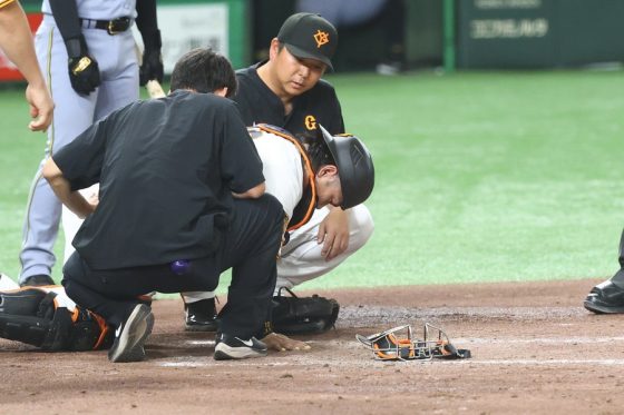 巨人・甲斐拓也が5回からベンチへ 3回にファウル直撃で苦悶の表情…交代直後に2ラン被弾 読売ジャイアンツ(巨人) 2025.07.21 【実際の様子】うずくまり苦悶…甲斐にファウルが直撃したシーン 【実際の様子】うずくまり苦悶…甲斐にファウルが直撃したシーン (Full-Count編集部)