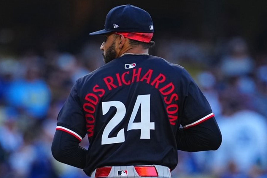 注目されたのは、相手の先発右腕シメオン・ウッズリチャードソン投手の背中だった。カメラがその背中を捉えると、ユニホームには「Woods Richardson」と15文字にもおよぶローマ字が。背中いっぱいに広がる名前が、異彩を放っていた。