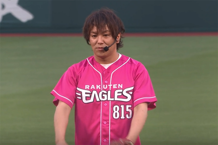 自身の名前にちなんだ背番号「815」のピンクのユニホームに身を包んで登場。石原彪捕手のミットめがけてノーバウンドの投球を披露し、手を振って球場の歓声に応えていた。