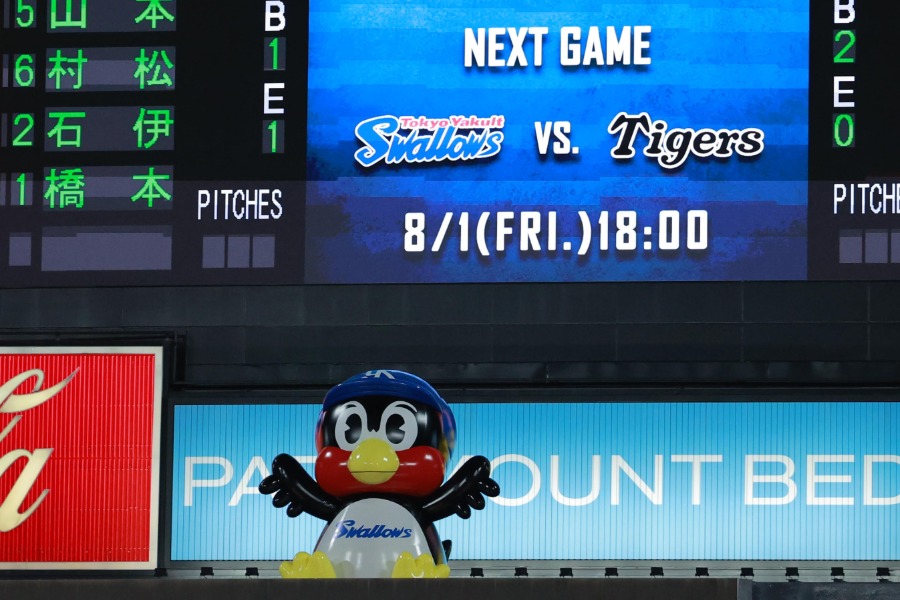 7月に入り、白星を積み重ねるヤクルトに“強力な味方”が現れた。5連勝をマークした26日の中日戦終了後、神宮球場に巨大な“つば九郎”が登場。その光景に「あれ?いつの間にかつば九郎がいる」「泣きそう」「待ってた」とファンの反応が相次いだ。