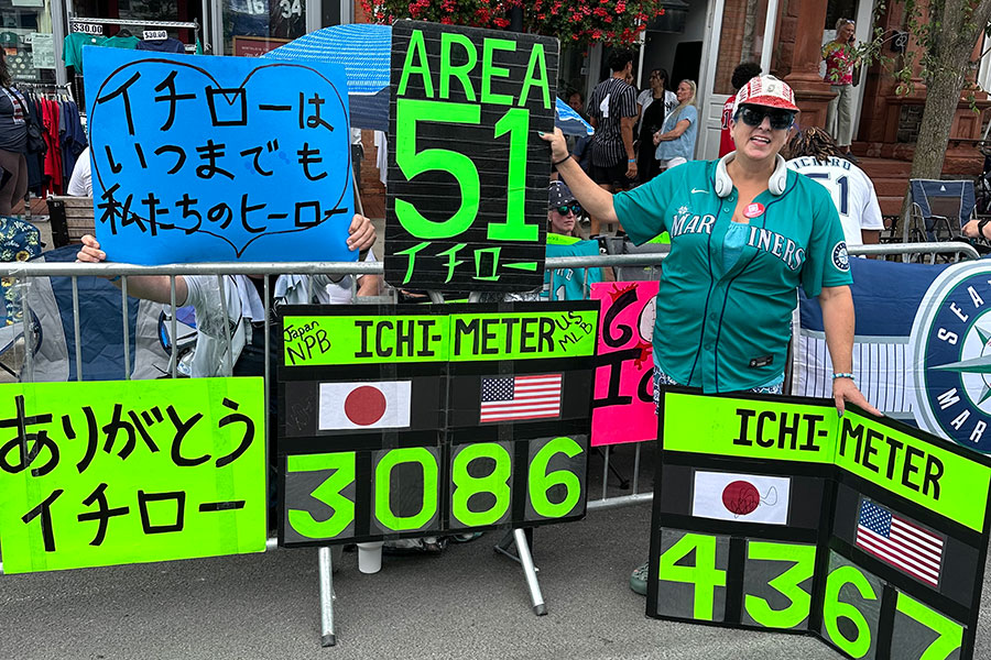 クーパーズタウンで行われた祝賀パレードにいたのは、イチロー氏の大ファンであるエイミー・フランツさん。マリナーズ本拠地でイチロー氏の安打数をカウントする「イチメーター」は日本人にもお馴染みだ。