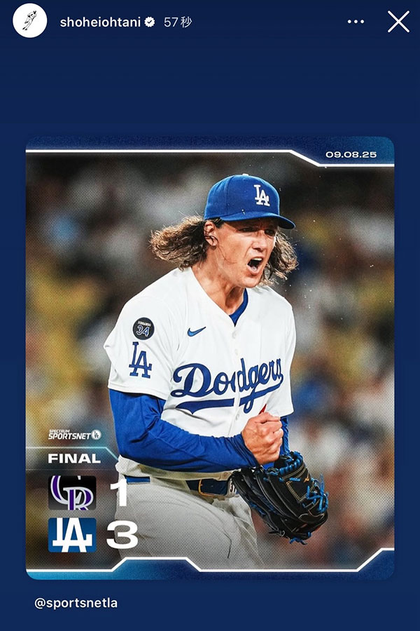 183キロ二塁打も…大谷翔平が“3連投”で称えたヒーロー 連勝後に忘れなかった感謝 大谷翔平 2025.09.09 【実際の投稿】ド軍逆転勝利で…試合後、大谷翔平が真っ先に称えた「ヒーロー」 【実際の投稿】ド軍逆転勝利で…試合後、大谷翔平が真っ先に称えた「ヒーロー」(画像はスクリーンショット) (Full-Count編集部) この画像の記事を読む 1 2 RECOMMEND オススメ記事 KEYWORD 注目のタグ #ドジャース #エンゼルス #アーロン・ジャッジ #デーブ・ロバーツ #パドレス #カブス #マイク・トラウト #フェルナンド・タティスJr. #マリナーズ #フアン・ソト #ヤンキース #レッドソックス #ジェイコブ・デグロム #ブルージェイズ #アンソニー・レンドン CATEGORY 関連カテゴリ一 日本人選手 ダルビッシュ有 イチロー MLB総合 大谷翔平 前田健太 菊池雄星 鈴木誠也 菅野智之 山本由伸 吉田正尚 佐々木朗希 千賀滉大 今永昇太 松井裕樹 小笠原慎之介