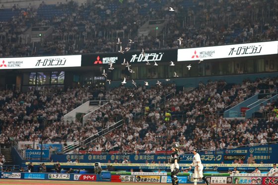 ZOZOマリンで珍事…鳥の群れ乱入で試合中断 約2分間球場内を飛行、ファン騒然 千葉ロッテマリーンズ 2025.09.11 2025.09.12 【実際の様子】試合中に予期せぬ乱入…グラウンドを飛行する鳥の群れ 【実際の様子】試合中に予期せぬ乱入…グラウンドを飛行する鳥の群れ【写真:小池義弘】 (Full-Count編集部) この画像の記事を読む