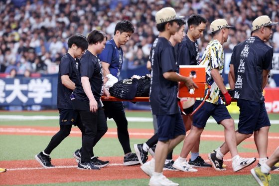 オリ曽谷、折れたバットが胸に直撃 担架で運ばれ緊急検査へ…アクシデントに場内騒然 オリックス・バファローズ 2025.09.14 【実際の様子】マウンドでうずくまる曽谷…担架で運ばれナインも心配そうな表情 【実際の様子】マウンドでうずくまる曽谷…担架で運ばれナインも心配そうな表情 (Full-Count編集部) この画像の記事を読む