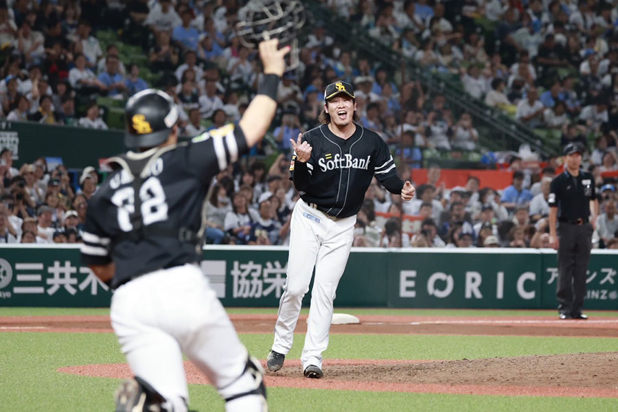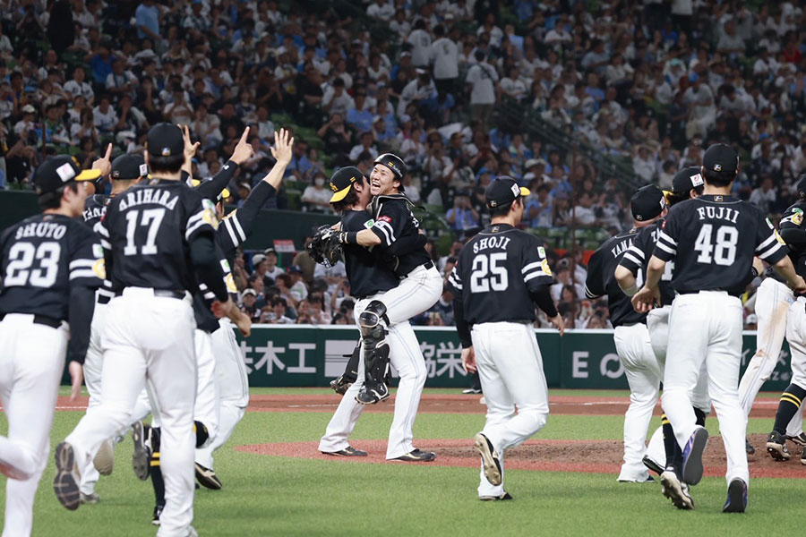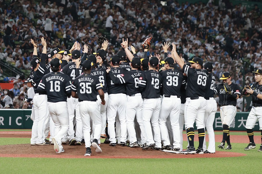 ソフトバンクがパ・リーグ連覇達成! 借金7の最下位から大逆転…前身含めて21度目の頂点 福岡ソフトバンクホークス 2025.09.27 【実際の様子】優勝決定、歓喜の瞬間!喜びを爆発させたソフトバンクの選手たち 【実際の様子】優勝決定の瞬間!ガッツポーズの杉山&マスクを高く掲げて駆け寄る海野【写真:小池義弘】 【優勝の映像】輪の中心で声を張り上げ…嬉しそうな小久保裕紀監督、歓喜の胴上げ 1 2 3 RECOMMEND オススメ記事 KEYWORD 注目のタグ #ファイターズガール #新庄剛志 #戦力外通告 #周東佑京 #牧原大成 #近藤健介 #中嶋聡 #稲葉篤紀 #宮城大弥 #伊藤大海 #杉本裕太郎 #新人王 #ハニーズ #BsGirls #マスコット CATEGORY 関連カテゴリ一 東北楽天ゴールデンイーグルス 埼玉西武ライオンズ 千葉ロッテマリーンズ オリックス・バファローズ 福岡ソフトバンクホークス 北海道日本ハムファイターズ 浅村栄斗 鈴木大地 源田壮亮 藤原恭大 澤村拓一 平野佳寿 吉田輝星 森友哉 山川穂高 柳田悠岐 今宮健太 有原航平 上沢直之 清宮幸太郎 新庄剛志 RANKING 1 前田健太、広島から「オファーは届かなかった」 楽天で再起…明かした“胸中” 2 イチロー氏、まさかの肉離れで走れず 高校生指導で異例の謝罪「すごく自分に残念」 3 大谷翔平が“来店”で「ぎゃー!!!!」 判明したオフの行動…訪れた場所にSNS注目 4 楽天が前田健太の獲得を発表 日米通算165勝、チームは先発に課題…11年ぶり日本復帰 5 巨人の電撃発表にネット騒然「ええええ?」 突然の“退団劇”に「何があった!?」
