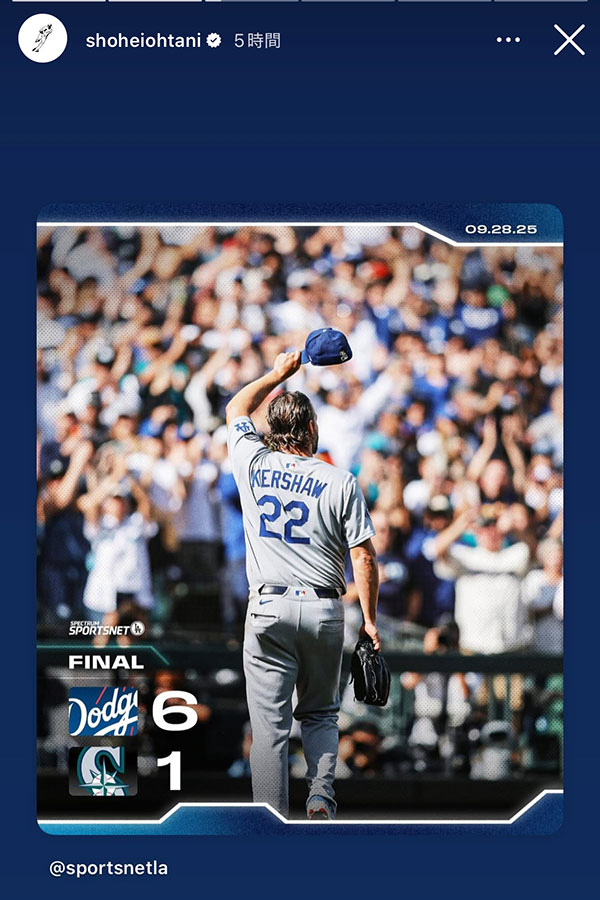 大谷翔平が真っ先に伝えた“光景” 自己新記録よりも先に…ファン総立ち、伝説の後ろ姿 大谷翔平 2025.09.29 【実際の投稿】大谷翔平が自身の記録よりも先に伝えたこと…総立ちの観客に応えるレジェンド 【実際の投稿】大谷翔平が自身の記録よりも先に伝えたこと…総立ちの観客に応えるレジェンド(画像はスクリーンショット) (Full-Count編集部) この画像の記事を読む 1 2 RECOMMEND オススメ記事 KEYWORD 注目のタグ #ドジャース #エンゼルス #アーロン・ジャッジ #デーブ・ロバーツ #パドレス #カブス #マイク・トラウト #フェルナンド・タティスJr. #マリナーズ #フアン・ソト #ヤンキース #レッドソックス #ジェイコブ・デグロム #ブルージェイズ #アンソニー・レンドン CATEGORY 関連カテゴリ一 日本人選手 ダルビッシュ有 イチロー MLB総合 大谷翔平 前田健太 菊池雄星 鈴木誠也 菅野智之 山本由伸 吉田正尚 佐々木朗希 千賀滉大 今永昇太 松井裕樹 小笠原慎之介 RANKING 1 前田健太、広島から「オファーは届かなかった」 楽天で再起…明かした“胸中” 2 イチロー氏、まさかの肉離れで走れず 高校生指導で異例の謝罪「すごく自分に残念」 3 大谷翔平が“来店”で「ぎゃー!!!!」 判明したオフの行動…訪れた場所にSNS注目 4 楽天が前田健太の獲得を発表 日米通算165勝、チームは先発に課題…11年ぶり日本復帰 5 巨人の電撃発表にネット騒然「ええええ?」 突然の“退団劇”に「何があった!?」