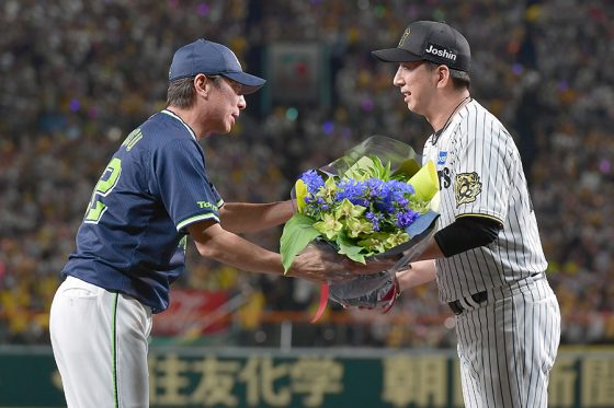 藤川監督、退任の三浦大輔監督に花束 DeNAは辞任届を受理…CSファイナル3連敗、場内「三浦コール」 横浜DeNAベイスターズ 2025.10.17 【画像】藤川監督が退任のセ監督に花束贈呈 甲子園に起きた感動の光景 【画像】藤川監督が退任のセ監督に花束贈呈 甲子園に起きた感動の光景【写真提供:産経新聞社】 (Full-Count編集部) この画像の記事を読む