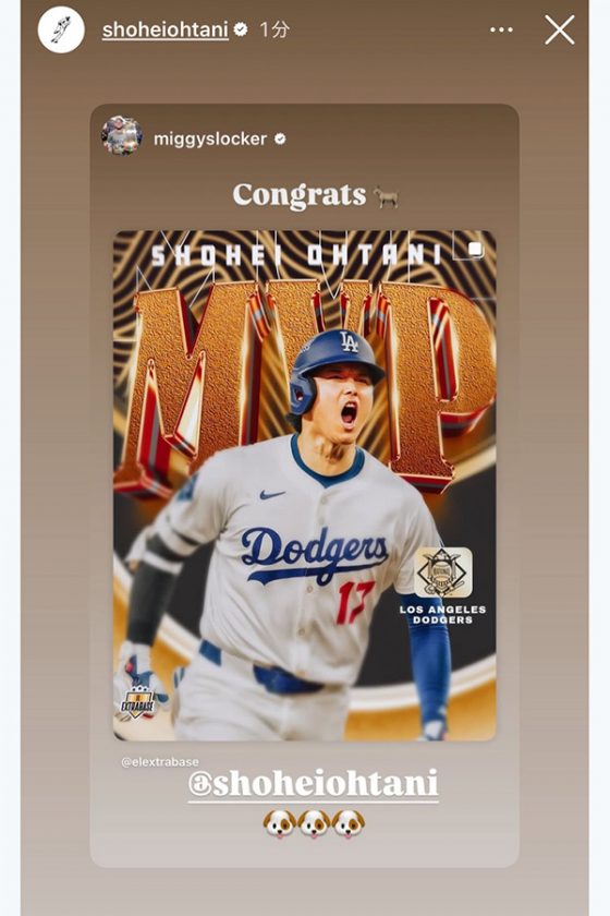 MVP受賞の大谷翔平、インスタ大量更新 祝福の嵐に異例の“連打”…6分間に訪れた11度の歓喜 大谷翔平 2025.11.14 【実際の投稿】大谷翔平がMVP受賞後…インスタで異例の“連打” ファンに届けた喜び 【実際の投稿】大谷翔平がMVP受賞後…インスタで異例の“連打” ファンに届けた喜び (Full-Count編集部) この画像の記事を読む