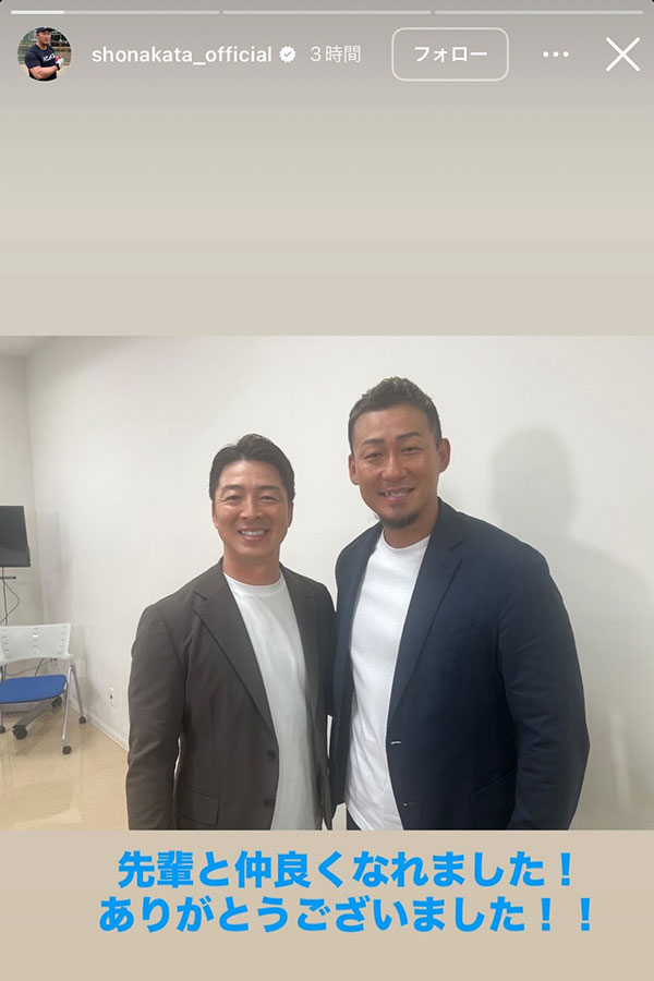 中田翔、“因縁の相手”と「仲良くなれました!」 笑顔の2ショット公開「先輩と」 中田翔 2025.12.03 【実際の画像】「先輩と仲良くなれました!」中田翔が“因縁の相手”と2ショット 【実際の画像】「先輩と仲良くなれました!」中田翔が“因縁の相手”と2ショット (Full-Count編集部) この画像の記事を読む