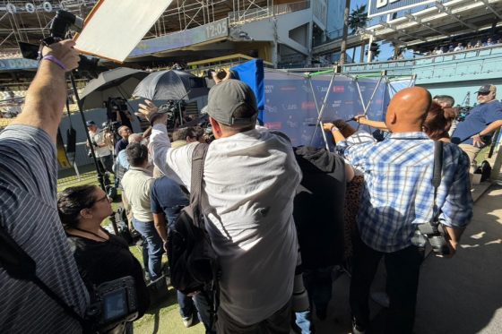 大谷翔平を巡って“異常事態”…球団広報が「全員深呼吸!」 米記者が伝えた喧騒 大谷翔平 2026.02.01 【囲み取材の様子】混雑しすぎて… バックボードの裏から大谷翔平の音声をとる記者 【囲み取材の様子】混雑しすぎて… バックボードの裏から大谷翔平の音声をとる記者 (Full-Count編集部) この画像の記事を読む