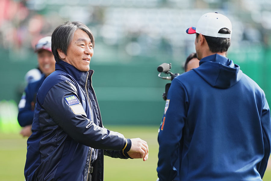 松井秀喜氏が侍ジャパンを激励 キャンプ初日に代表ウェアで登場…ダルビッシュと談笑も 侍ジャパン 2026.02.14 【実際の様子】貴重な侍ジャパンウェア… 日本代表に激励する松井秀喜氏 【実際の様子】貴重な侍ジャパンウェア… 日本代表に激励する松井秀喜氏【写真:加治屋友輝】 ダルビッシュと談笑する松井秀喜氏【写真:小林靖】 (Full-Count編集部)