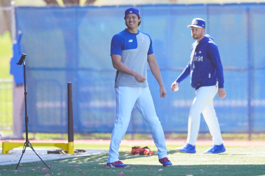 ドジャースの大谷翔平投手は14日(日本時間15日)、アリゾナ州グレンデールのキャンプ施設でバッテリー組のキャンプ2日目を迎え、実戦形式の「ライブBP」を行いました。その準備中には、少女から話しかけられて思わず頬をゆるめる場面も。右の手のひらに刻まれた“練習の痕”もカメラは捉えています。現地で撮影するFull-Count・荒川祐史カメラマンからの報告です。