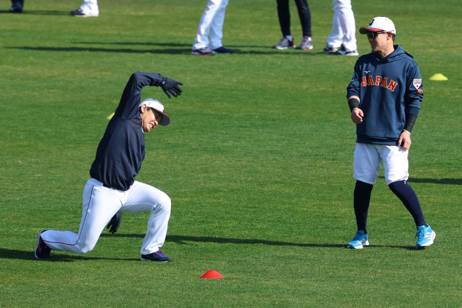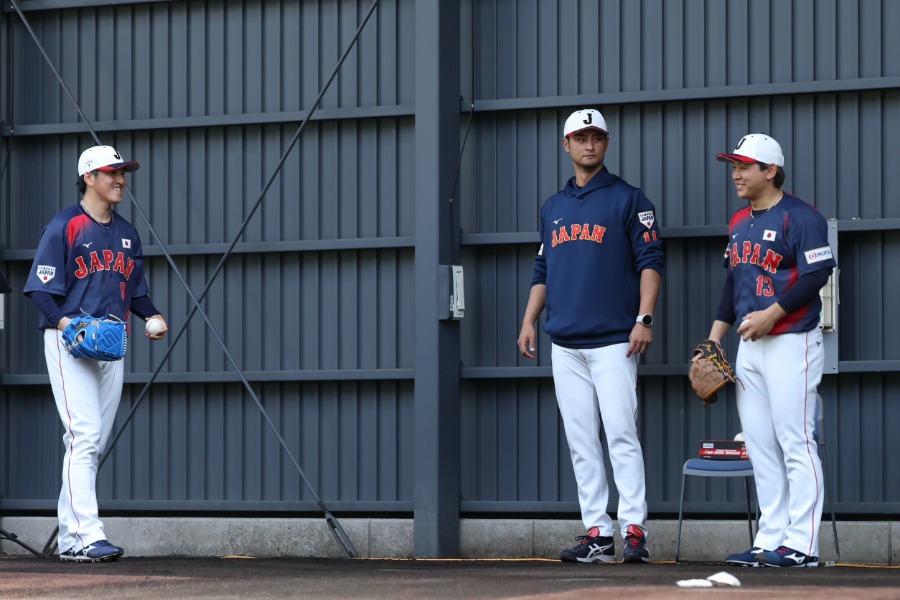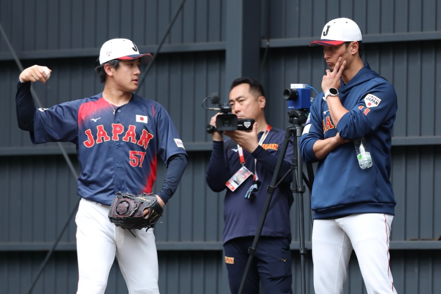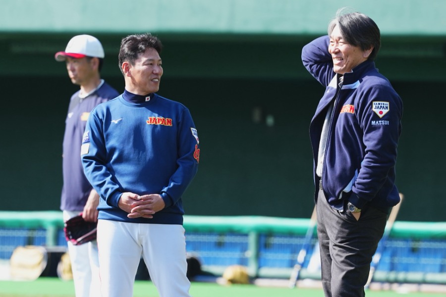野球日本代表「侍ジャパン」は15日、宮崎合宿2日目を行いました。臨時コーチを務める松井秀喜氏が2日連続で野手陣にアドバイス。ブルペンでは7投手が投球を行い。臨時アドバイザーのダルビッシュ有投手(パドレス)に選手たちが続々とアドバイスを求めました。他にも野茂英雄氏や、「Netflix 2026 スペシャルサポーター」に就任した嵐の二宮和也さんの姿も……。現地で撮影する小林靖、加治屋友輝両カメラマンからの報告です。
