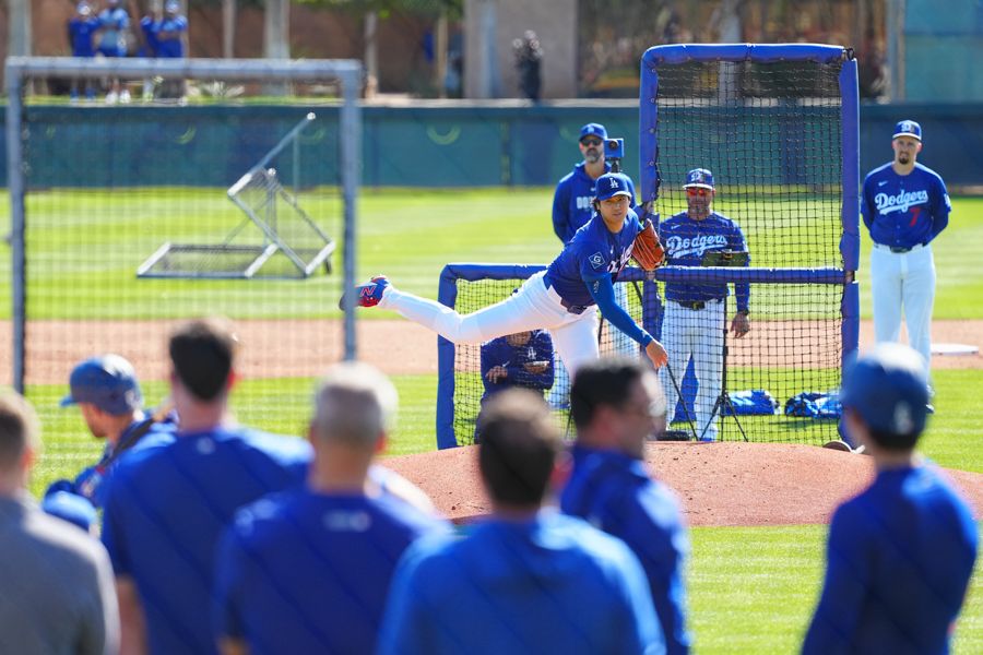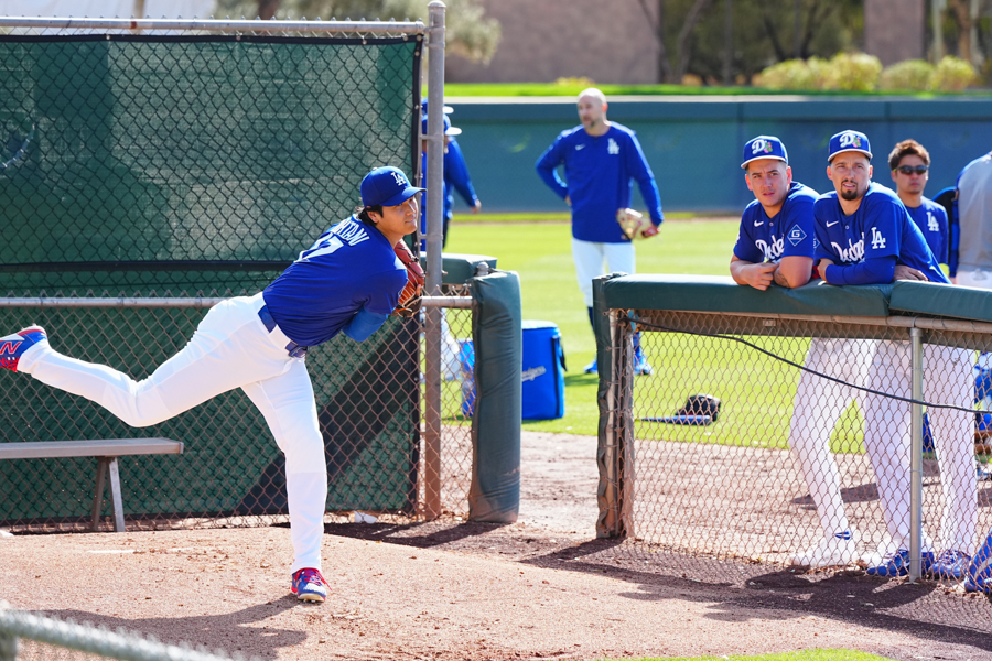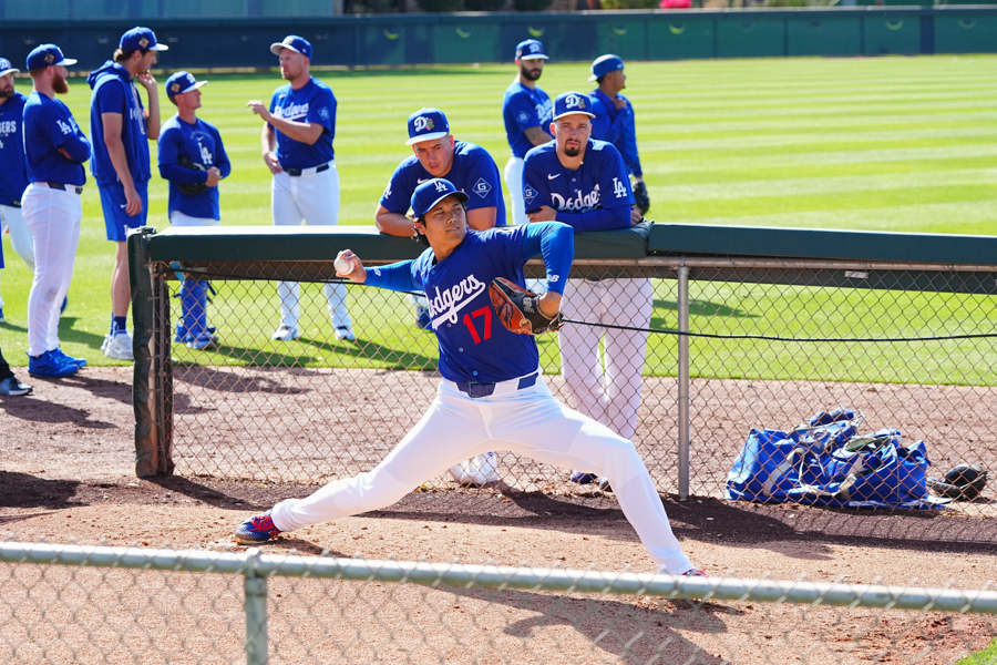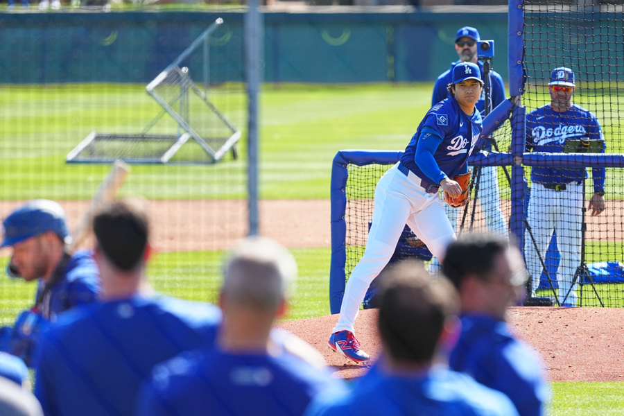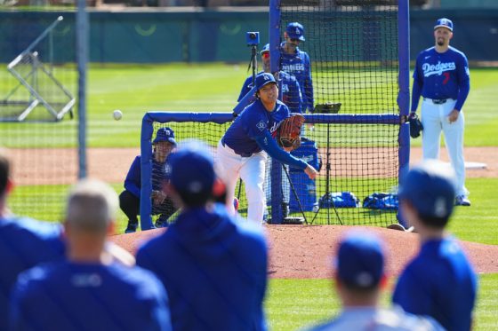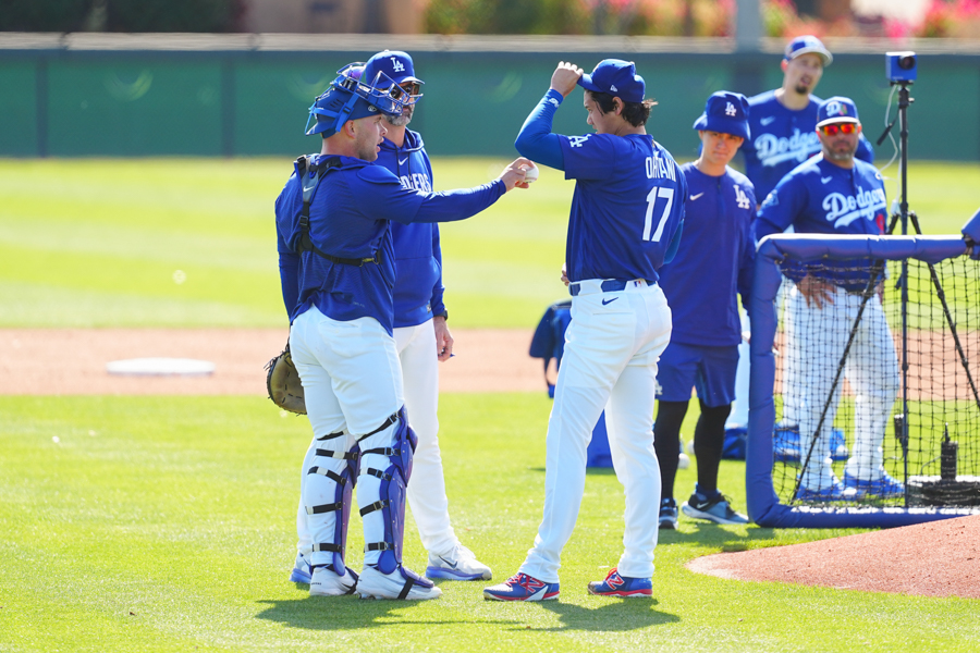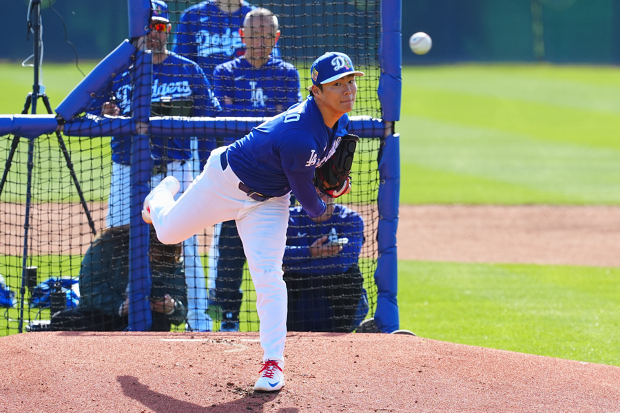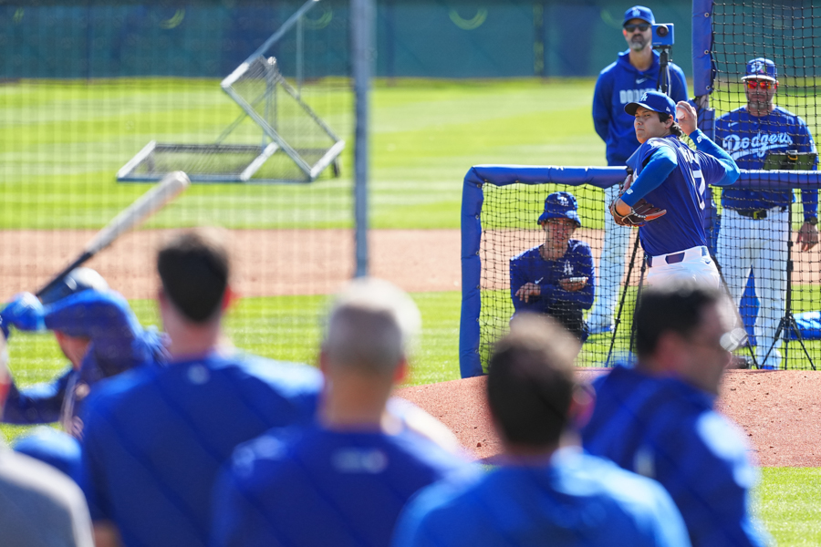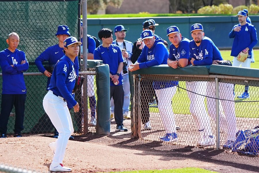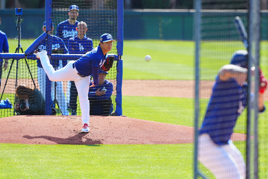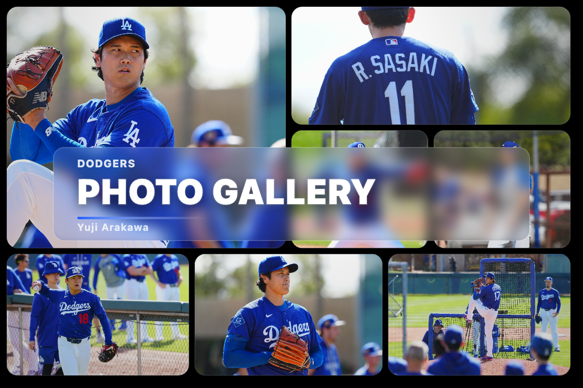 ドジャースの大谷翔平投手は17日(日本時間18日)、今キャンプ初となる「ライブBP」に登板しました。その投球を間近で見ようと、捕手の背後にはチームメートや関係者が集結。圧倒的なボールに、絶賛の声が相次ぎました。臨場感溢れるグラウンドでの様子を、Full-Count・荒川祐史カメラマンが撮影した212枚の写真でお届けします。