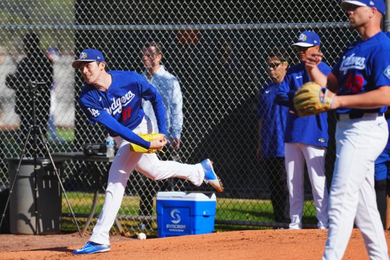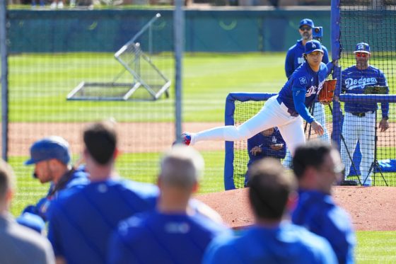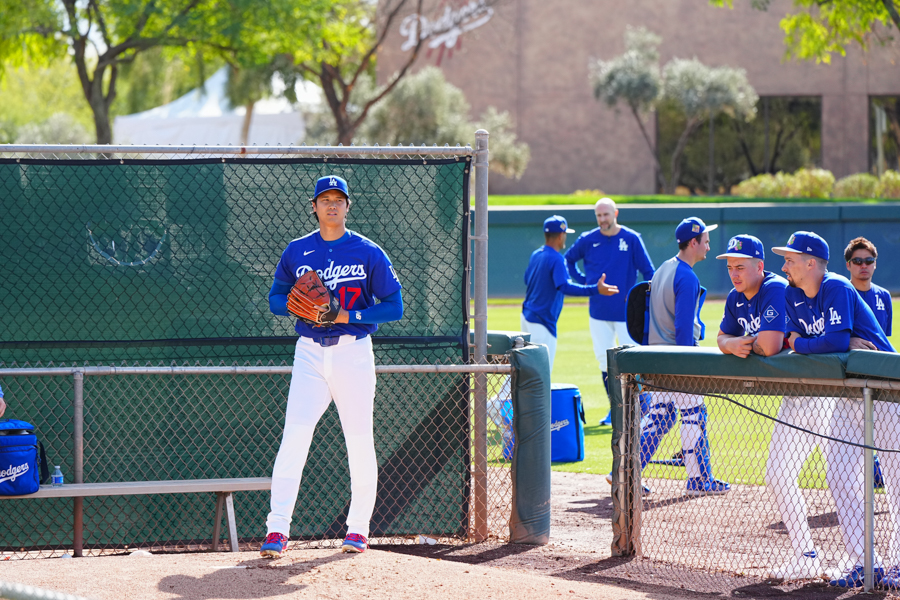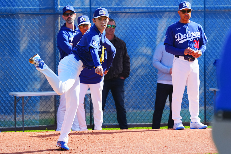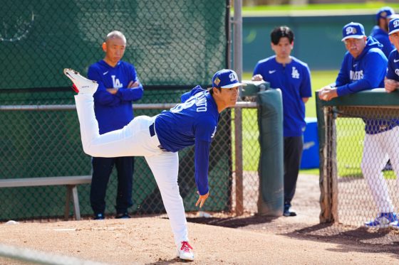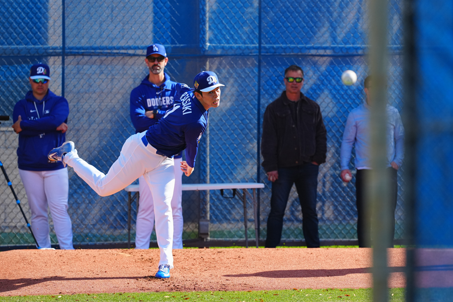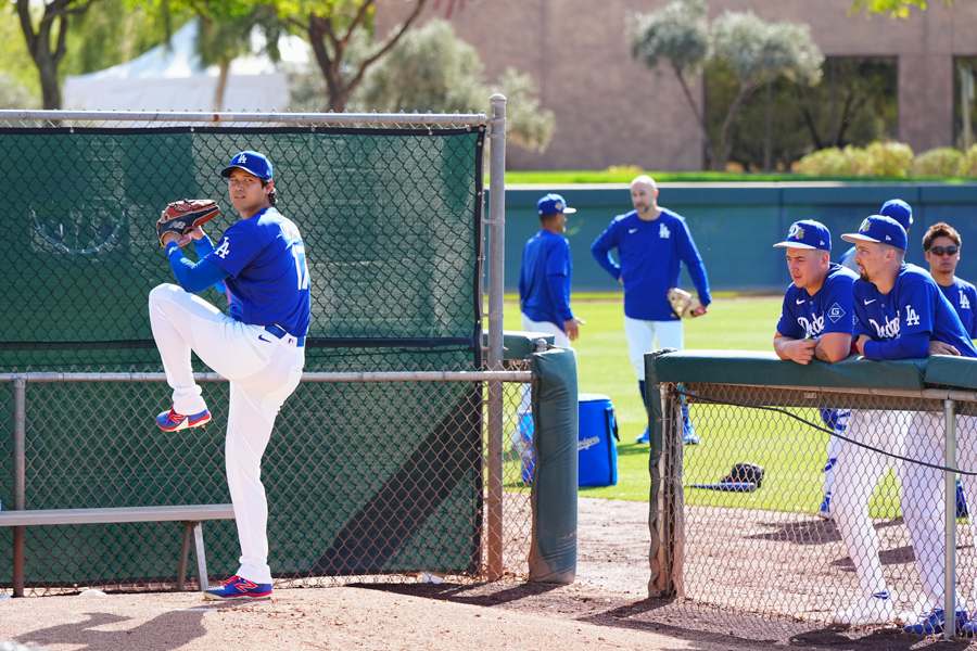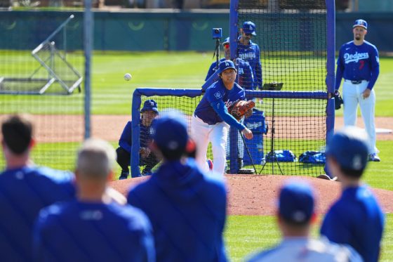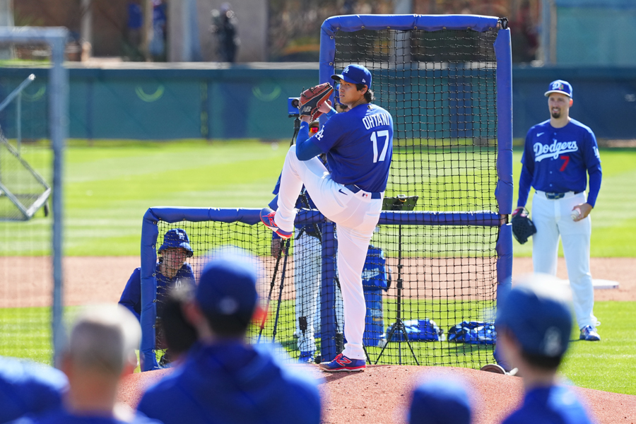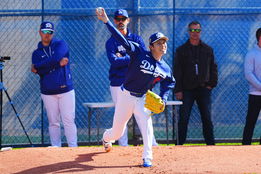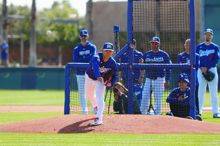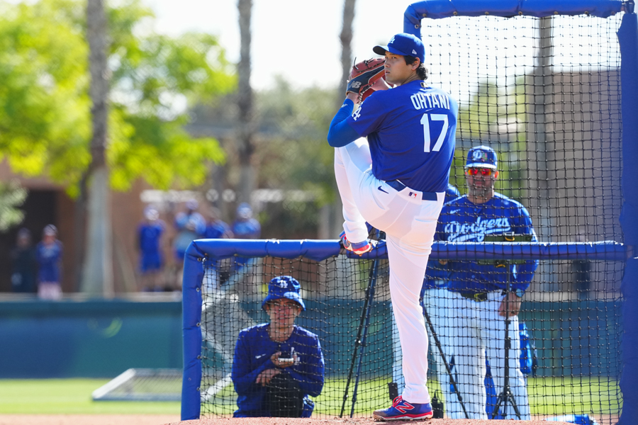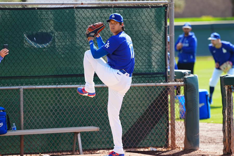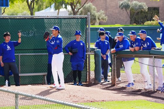 ドジャースの大谷翔平投手は17日(日本時間18日)、今キャンプ初となる「ライブBP」に登板しました。その投球を間近で見ようと、捕手の背後にはチームメートや関係者が集結。圧倒的なボールに、絶賛の声が相次ぎました。臨場感溢れるグラウンドでの様子を、Full-Count・荒川祐史カメラマンが撮影した212枚の写真でお届けします。
