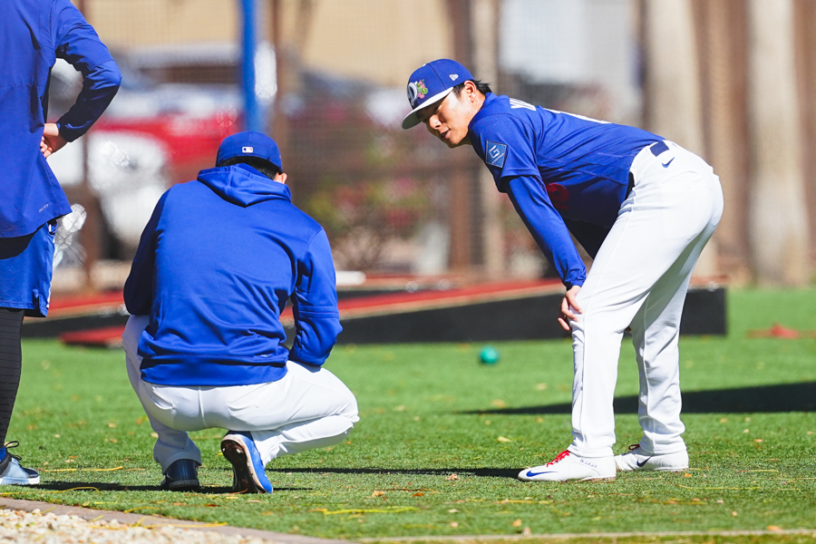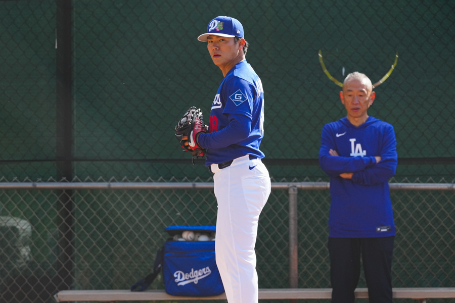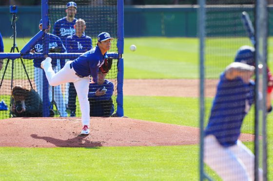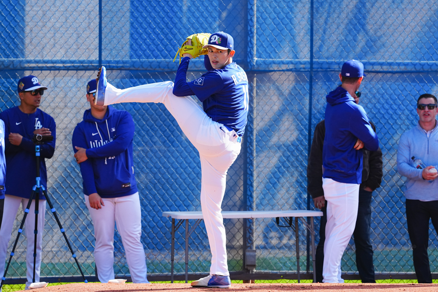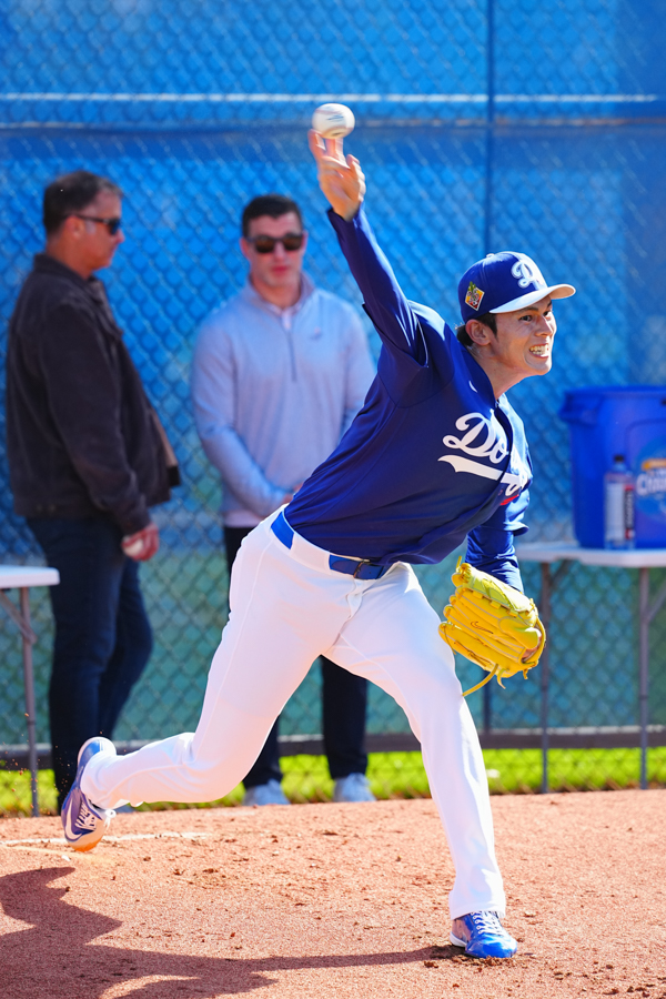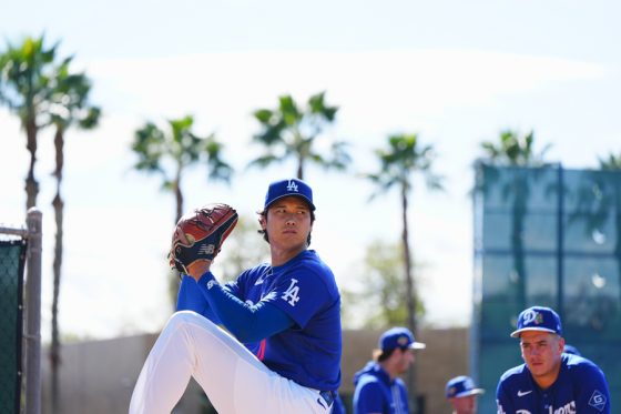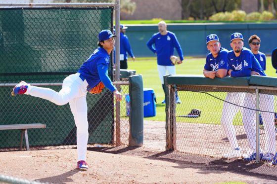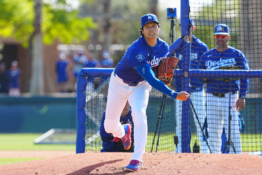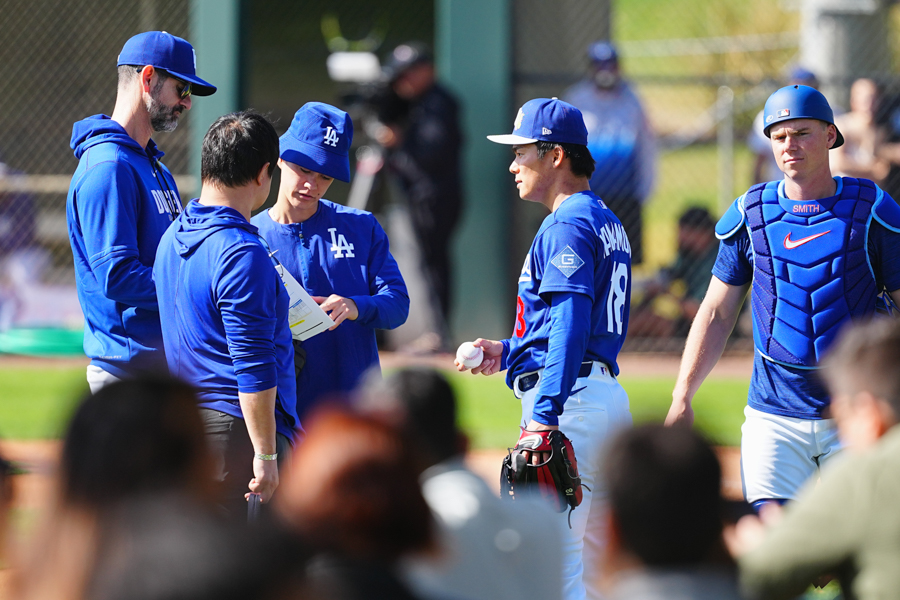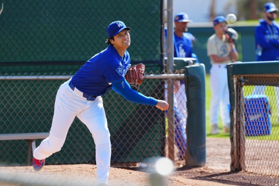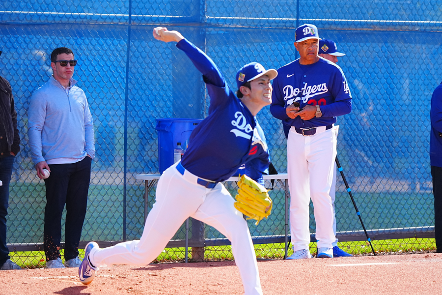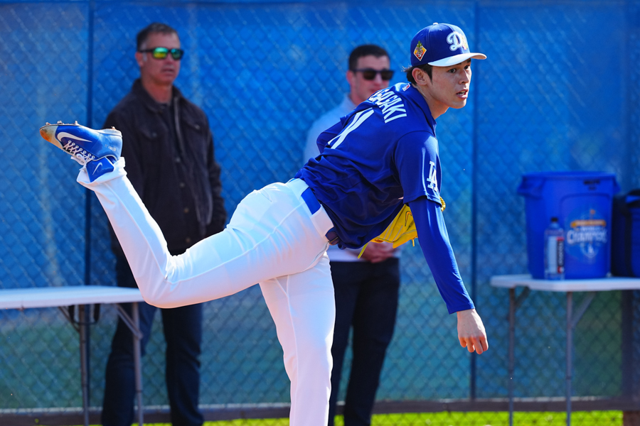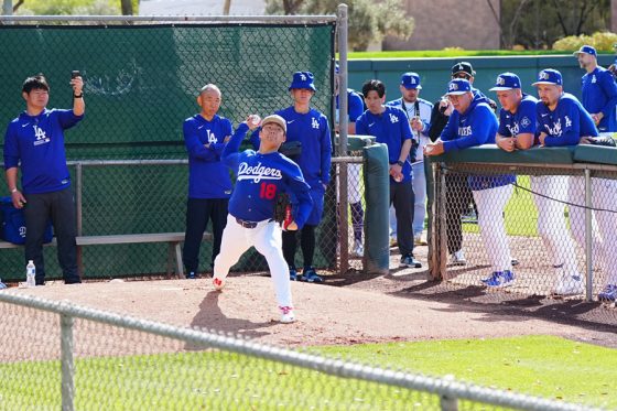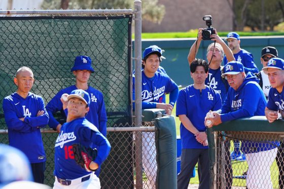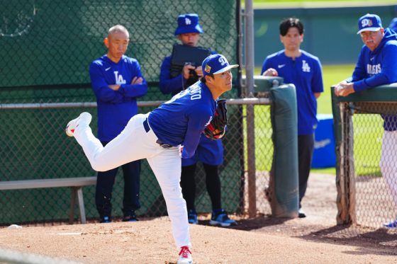 ドジャースの大谷翔平投手は17日(日本時間18日)、今キャンプ初となる「ライブBP」に登板しました。その投球を間近で見ようと、捕手の背後にはチームメートや関係者が集結。圧倒的なボールに、絶賛の声が相次ぎました。臨場感溢れるグラウンドでの様子を、Full-Count・荒川祐史カメラマンが撮影した212枚の写真でお届けします。