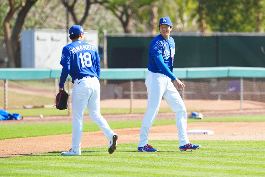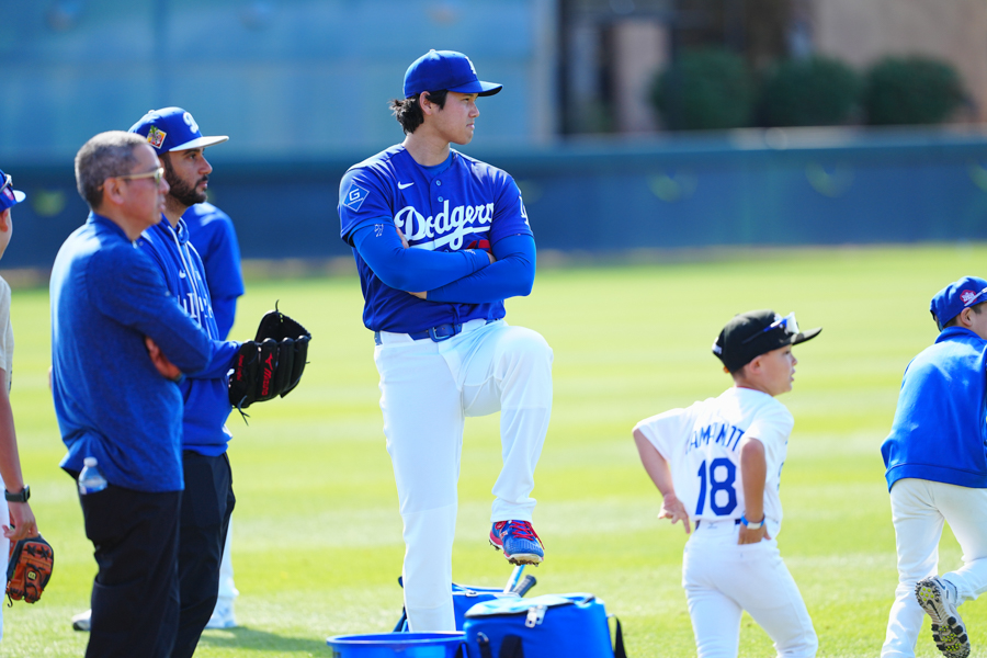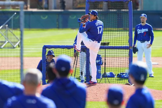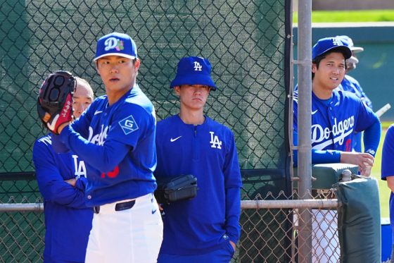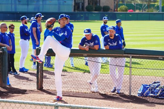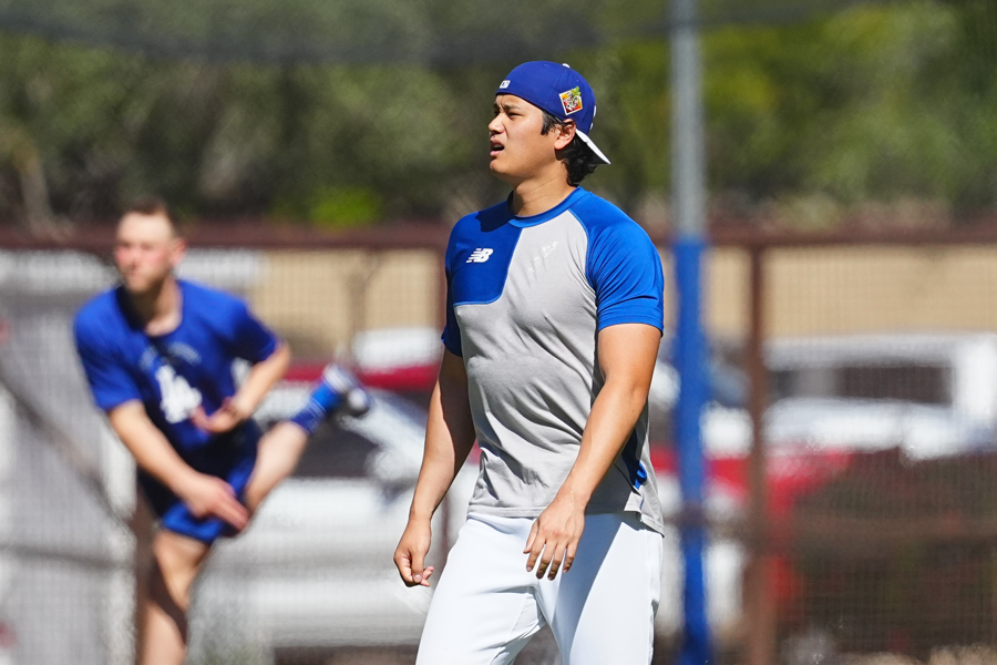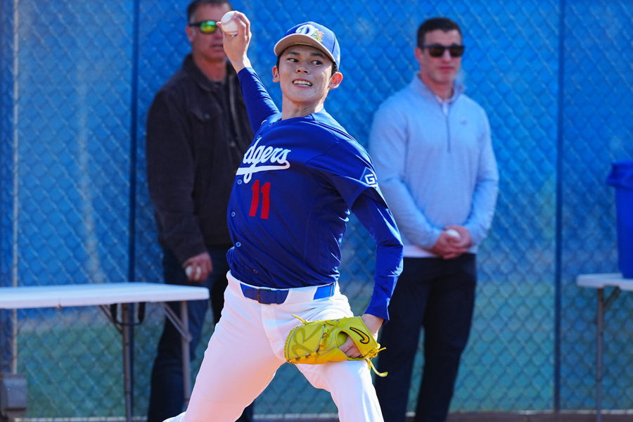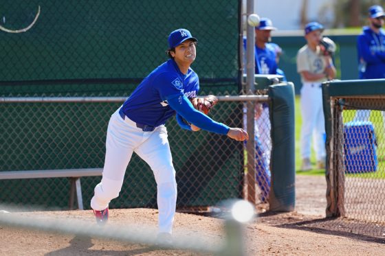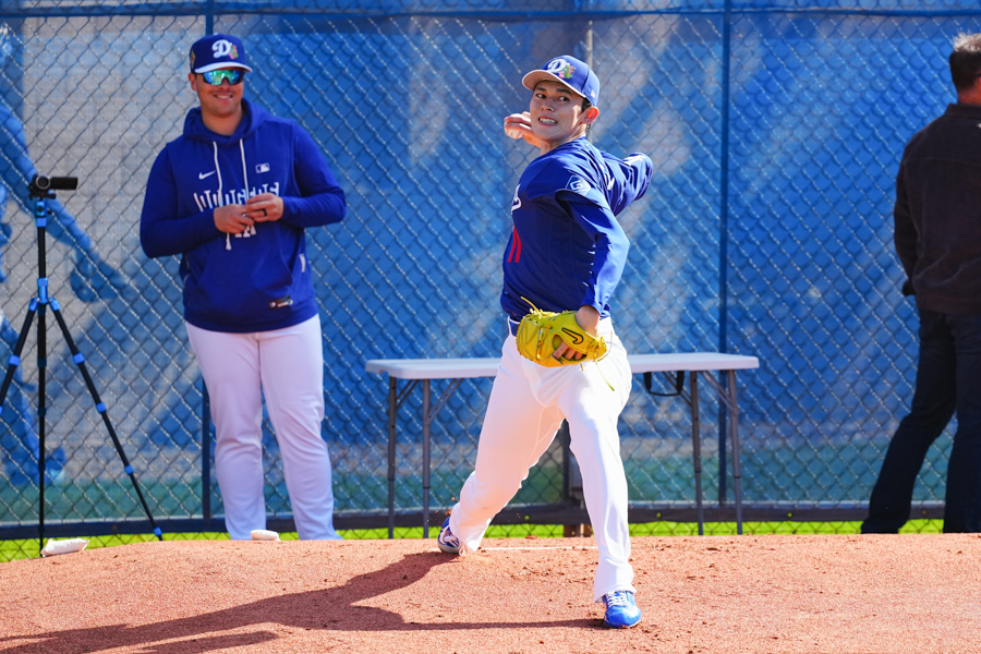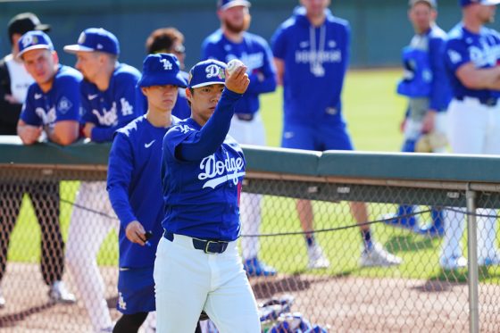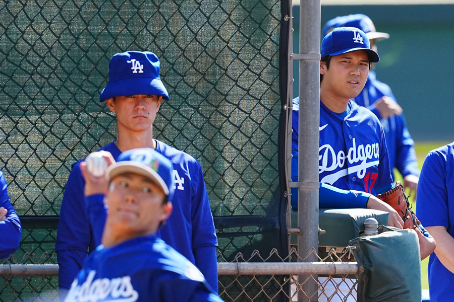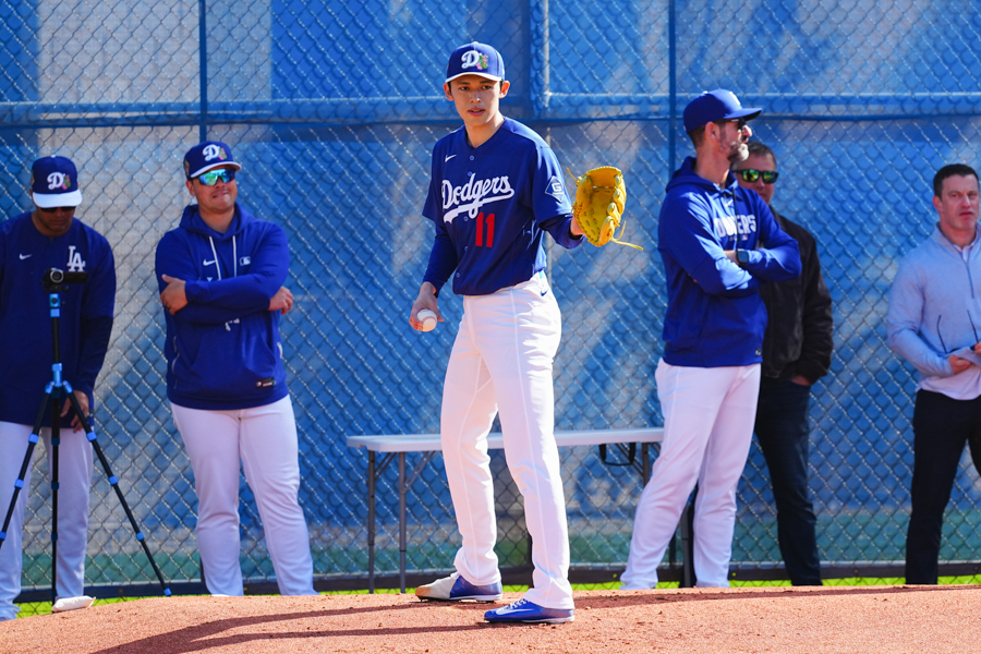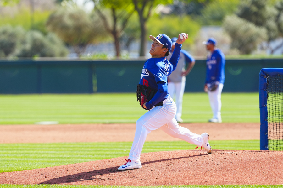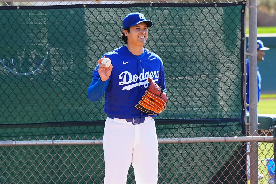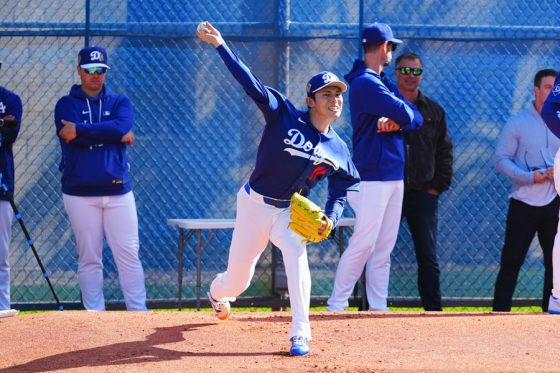 ドジャースの大谷翔平投手は17日(日本時間18日)、今キャンプ初となる「ライブBP」に登板しました。その投球を間近で見ようと、捕手の背後にはチームメートや関係者が集結。圧倒的なボールに、絶賛の声が相次ぎました。臨場感溢れるグラウンドでの様子を、Full-Count・荒川祐史カメラマンが撮影した212枚の写真でお届けします。
