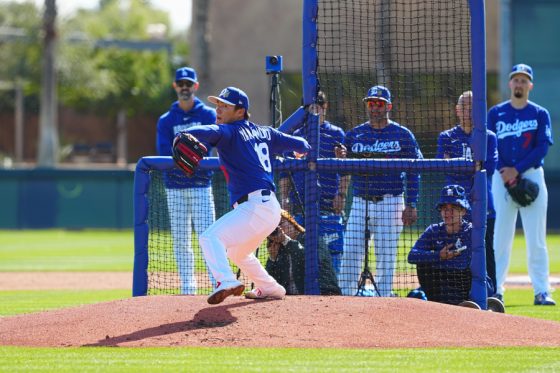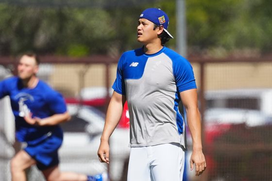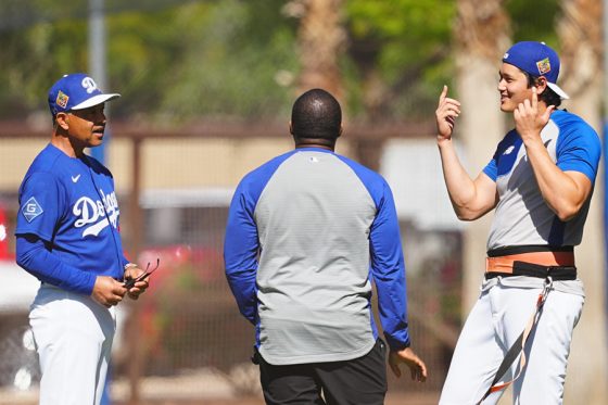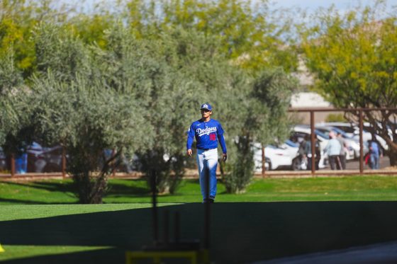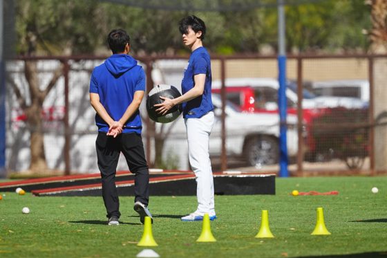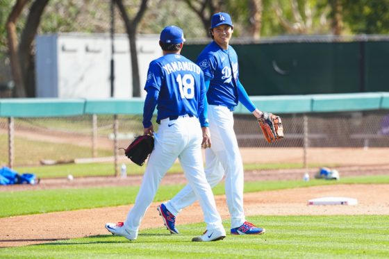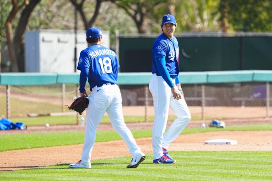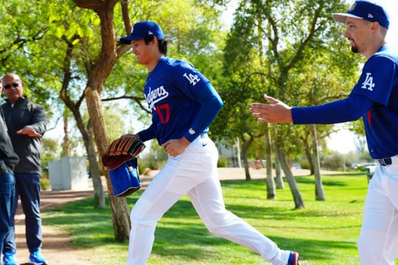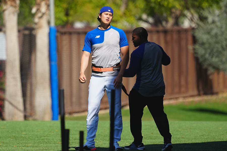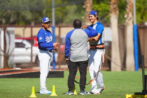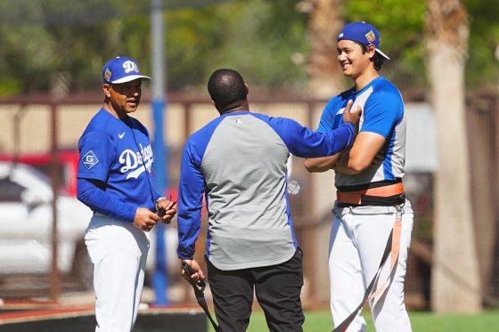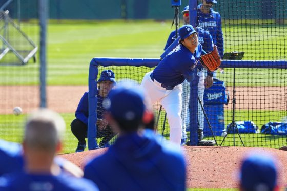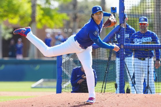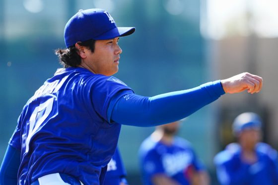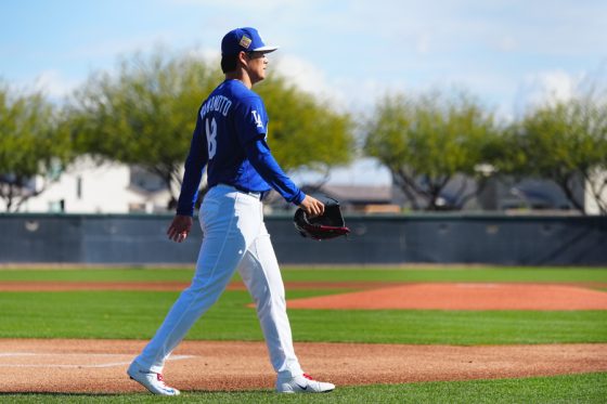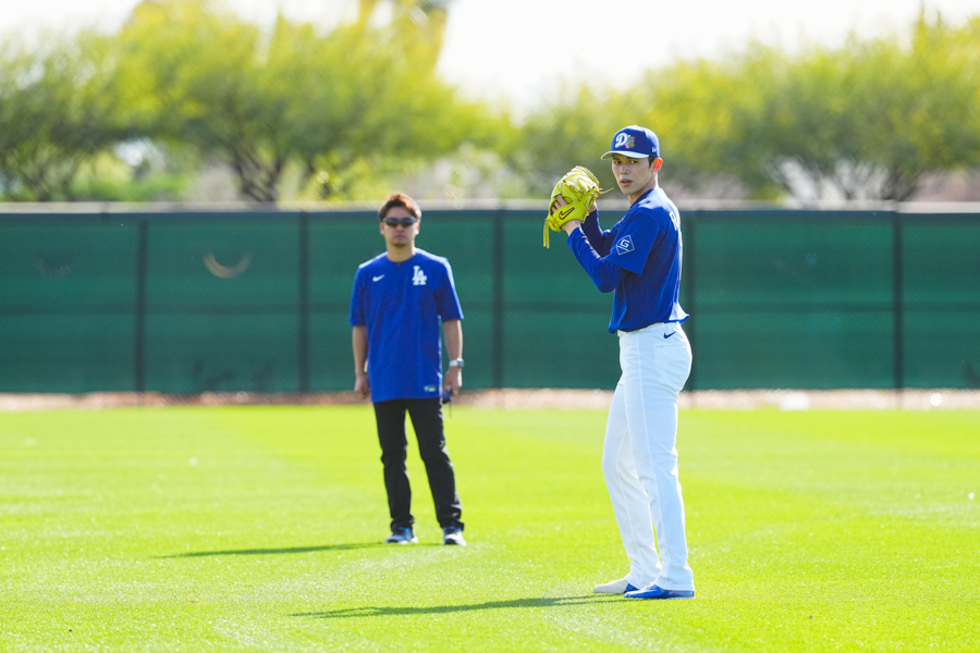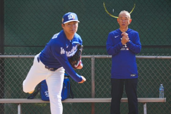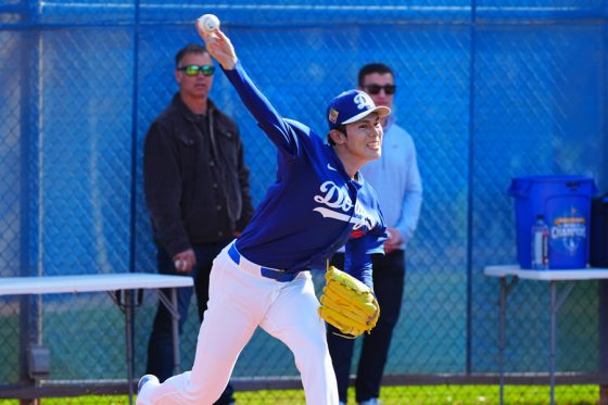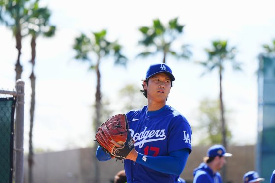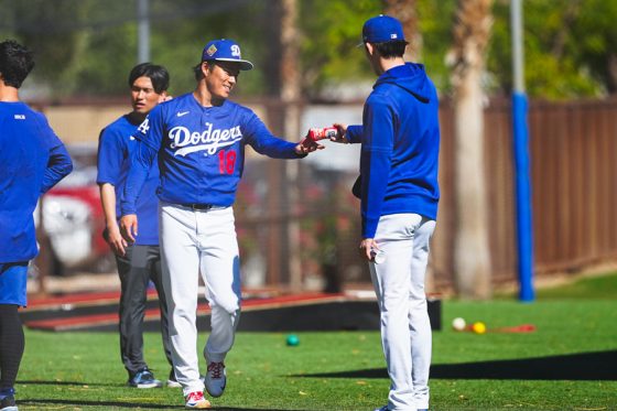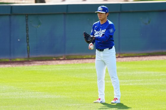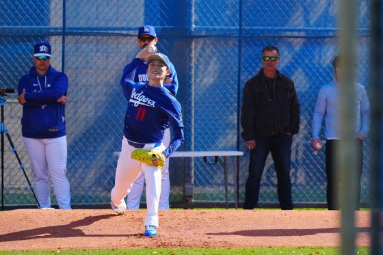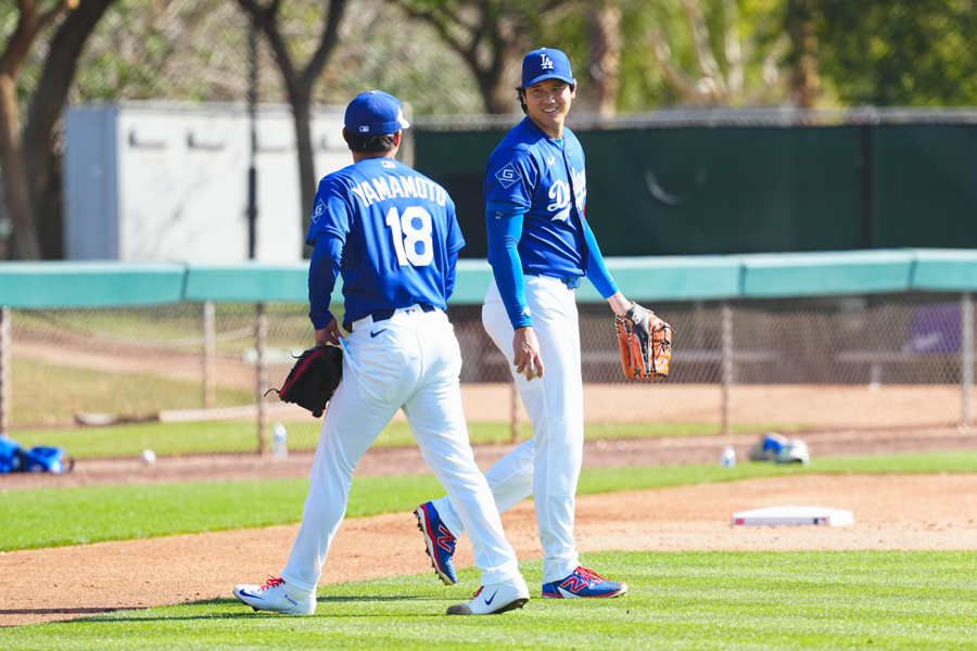 ドジャースの大谷翔平投手は17日(日本時間18日)、今キャンプ初となる「ライブBP」に登板しました。その投球を間近で見ようと、捕手の背後にはチームメートや関係者が集結。圧倒的なボールに、絶賛の声が相次ぎました。臨場感溢れるグラウンドでの様子を、Full-Count・荒川祐史カメラマンが撮影した212枚の写真でお届けします。