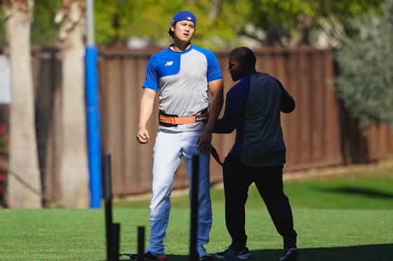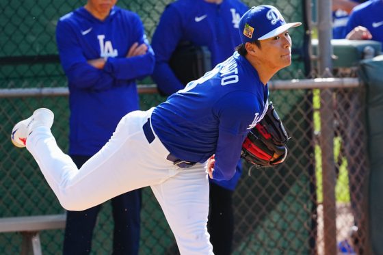 【写真212枚】躍動感あふれる大谷翔平の投球動作、チームメートも“大集結”|2月18日フォトギャラリー