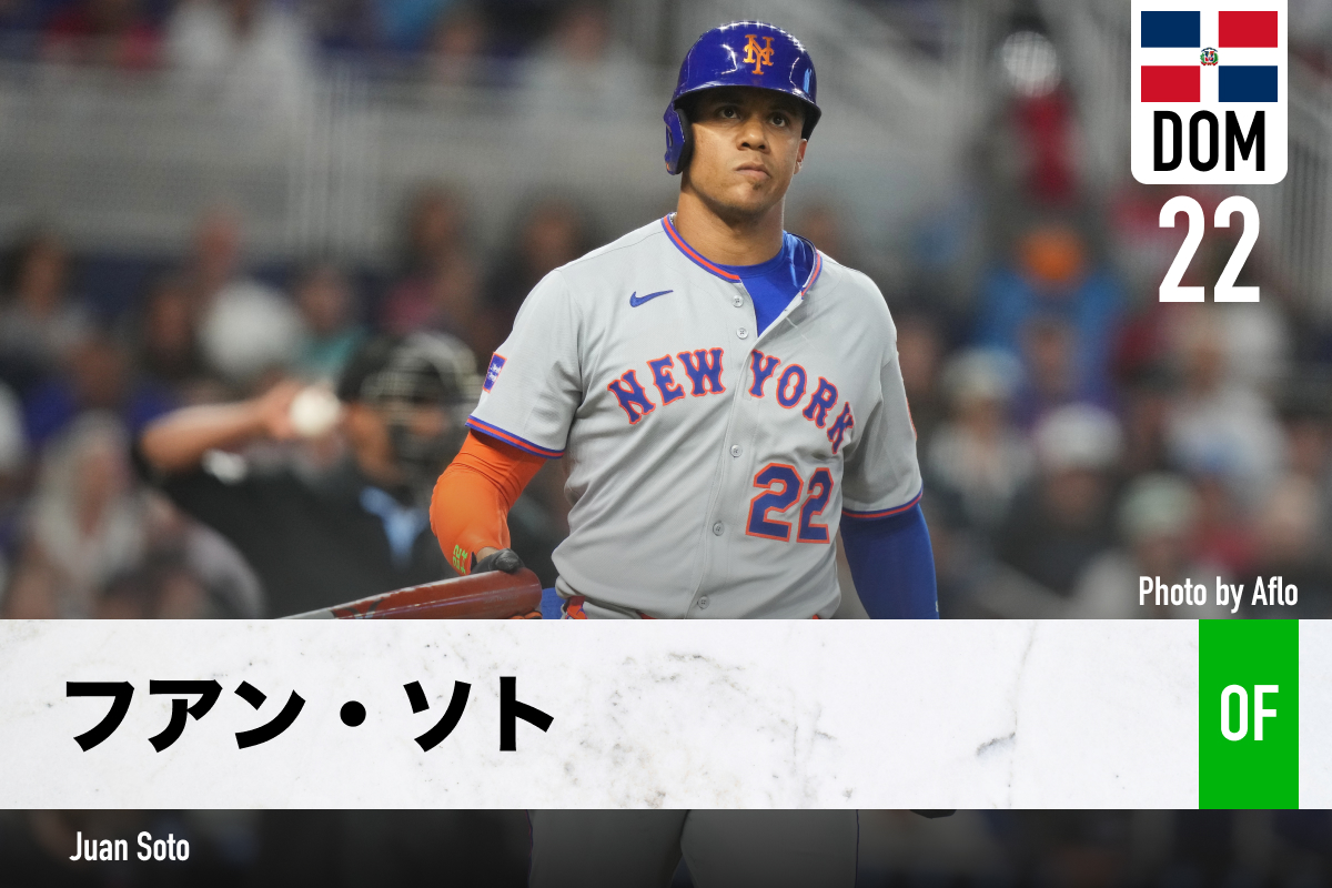 今大会で不動の中心に座るのが、フアン・ソト外野手(メッツ)だ。ドミニカが生んだ「天才」は、驚異的な選球眼と広角に長打を放つ打撃技術を誇る。2024年オフにはメッツと、大谷翔平投手を超える15年7億6500万ドル(約1187億円)でスポーツ史上最高額の契約を結んだ。メジャー通算200本塁打を超え、現役最高打者の一人と称される27歳は、短期決戦の国際舞台でも圧倒的な威圧感を放つ。