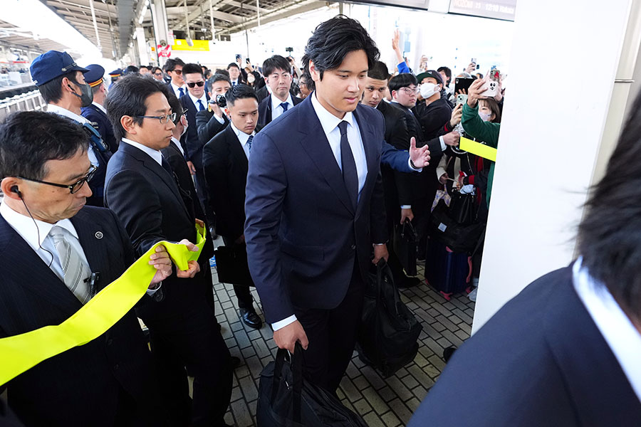 侍J見た米ファン混乱「どれが大谷だ」 バッチリ決めた新幹線移動が呼んだ「誰が誰だか」 侍ジャパン 2026.03.02 【実際の様子】「どれがショウヘイだ」 米ファン混乱…お揃いスーツで新幹線移動する侍ジャパン 【実際の様子】「どれがショウヘイだ」 米ファン混乱…お揃いスーツで新幹線移動する侍ジャパン【写真:Getty Images】 (Full-Count編集部) この画像の記事を読む 1 2 RECOMMEND オススメ記事