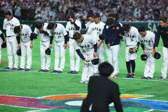 侍ジャパン、吉田正尚の逆転弾で3連勝 1次Rは1位通過…試合後は全員で天皇陛下に一礼 侍ジャパン 2026.03.08 2026.03.09 【実際の様子】豪州との激戦を制して3連勝の侍ジャパン 試合後は天皇陛下ご一行に深々と一礼 【実際の様子】豪州との激戦を制して3連勝の侍ジャパン 試合後は天皇陛下ご一行に深々と一礼 (Full-Count編集部)