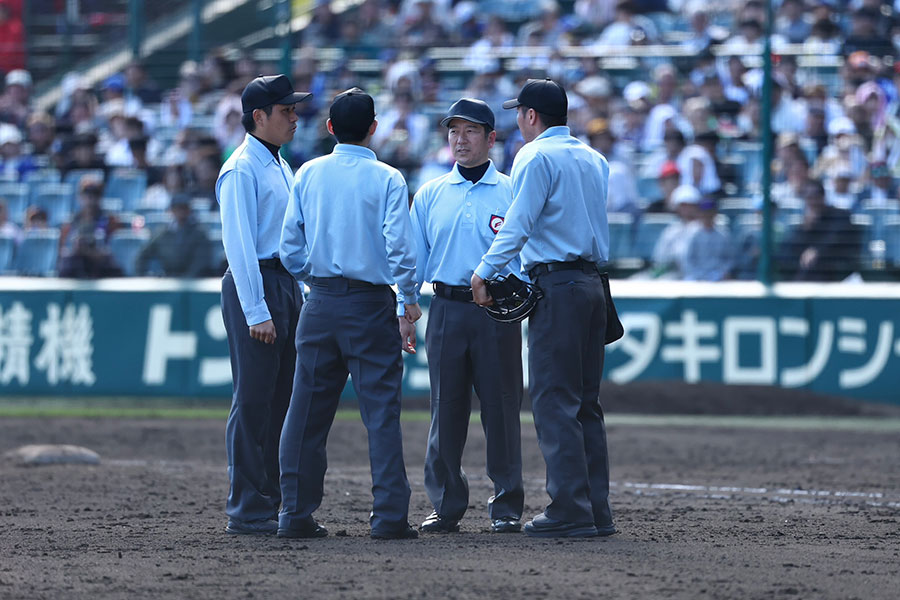 甲子園、審判団が異例の再協議 スクイズ巡り一時同点も…精査で判定“取り消し”に 高校野球 2026.03.26 【実際の様子】一体何があった? 大阪桐蔭戦で突然の中断、審判団が再協議する場面 【実際の様子】一体何があった? 大阪桐蔭戦で突然の中断、審判団が再協議する場面【写真:加治屋友輝】 (Full-Count編集部) この画像の記事を読む 1 2 RECOMMEND オススメ記事 KEYWORD 注目のタグ #都市対抗野球 #JR東日本 #トヨタ自動車 #JR西日本 #JR東海 #Honda #慶応義塾大学 #早稲田大学 #日本体育大学 #東京六大学野球 #東京大学 #高岸宏行 CATEGORY 関連カテゴリ一 高校野球 独立リーグ 社会人野球 大学野球 女子野球 ソフトボール 少年野球
