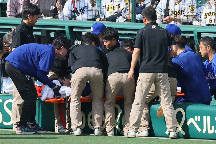 中日・福永にアクシデント 打球追いかけカメラマン席へ→動けずに担架で搬送→緊急交代、甲子園騒然 プロ野球 2026.04.18 【実際の様子】果敢なプレーも…担架に乗せられ退場した中日・福永に球場騒然 【実際の様子】果敢なプレーも…担架に乗せられ退場した中日・福永に球場騒然【写真提供:産経新聞社】 (Full-Count編集部) 1 2 RECOMMEND オススメ記事 KEYWORD 注目のタグ #牧秀悟 #森下翔太 #根尾昂 #栗林良吏 #ヴィーナス #柳裕也 #菅野智之 #森下暢仁 #坂倉将吾 #マスコット #東京ドーム #つば九郎 #戦力外通告 #細川成也 CATEGORY 関連カテゴリ一 東京ヤクルトスワローズ 中日ドラゴンズ 横浜DeNAベイスターズ 読売ジャイアンツ(巨人) 広島東洋カープ 阪神タイガース