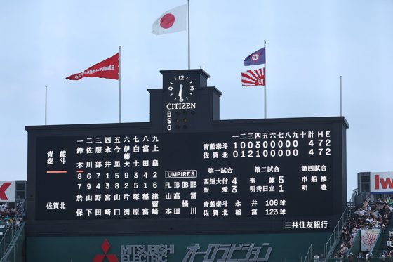 第107回全国高校野球選手権大会で異例の熱戦が続いている。9日に大会5日目を迎えたが、第3試合の青藍泰斗(栃木)-佐賀北が延長に突入。5日目にして5度目の延長戦となった。