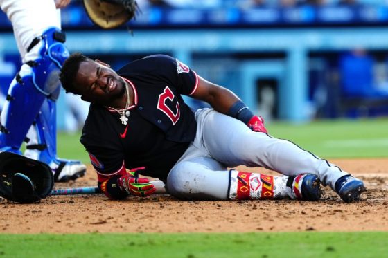 ガーディアンズのアンヘル・マルティネス外野手は1日(日本時間2日)、敵地ドジャース戦で6回に左膝に死球を受けた。前日にも同じ場所に当たっており、崩れ落ちて苦悶。目に涙を浮か…