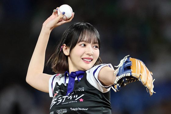 9日に神宮で行われたヤクルト-中日戦で、声優の日高里菜さんが始球式を行った。フリルのスカート姿から大きく振りかぶって投じた1球は見事なノーバウンド。場内も騒然とした。