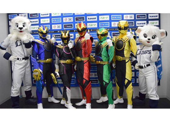 4月29日、ベルーナドームに「ナンバーワン戦隊ゴジュウジャー」が来場。ヒーローショーやイニング間イベント、ゴジュウレオン/百夜陸王を演じる鈴木秀脩さんによるセレモニアルピッ…