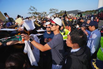 テキスト2026.02.19野球日本代表「侍ジャパン」の宮崎合宿に臨時アドバイザーとして参加しているダルビッシュ有投手(パドレス)が19日、練習後にサイン会を行なった。ファンや報道陣が殺到するなか、7人の警備員が“スクラム態勢”でガードする厳戒ぶりだった。