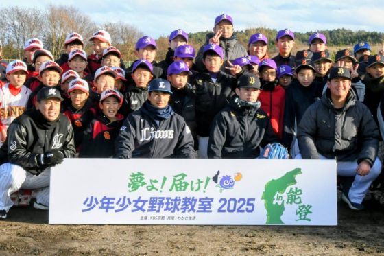 2024年1月1日に発生した能登半島地震から間もなく2年。被災地の野球少年少女を励まそうと、ロッテ・角中勝也外野手ら石川県にゆかりのある選手ら9人が13日、輪島市の日本航空…