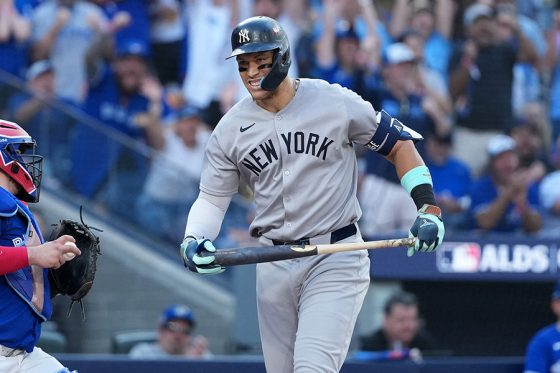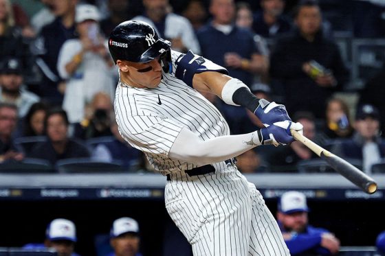 ヤンキースのアーロン・ジャッジ外野手が7日(日本時間8日)、本拠地ブルージェイズとの地区シリーズ第3戦に「2番・右翼」で出場。3点を追う4回に試合を振り出しに戻す今季1号3…