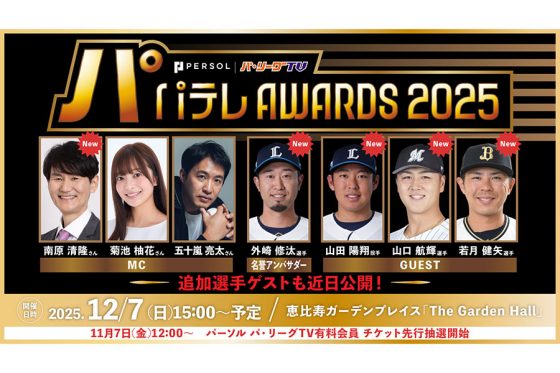 12月7日に開催される「パテレアワード2025」に、“パテレ名誉アンバサダー”として外崎修汰内野手(西武)、選手ゲストとして山田陽翔投手(西武)、山口航輝外野手(ロッテ)、…