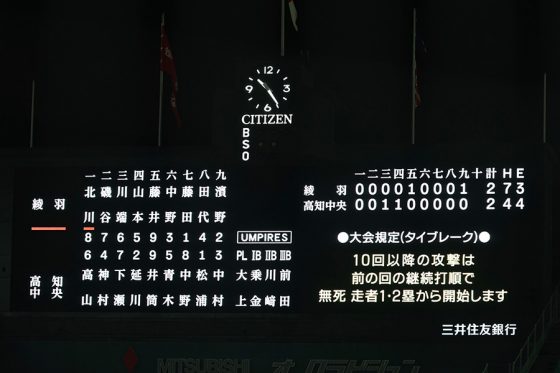 第107回全国高校野球選手権は8日、第4日目を迎えた。第4試合では高知中央-綾羽(滋賀)戦が9回までに決着がつかなかった。すでに午後10時を回っていたが、延長10回タイブレ…