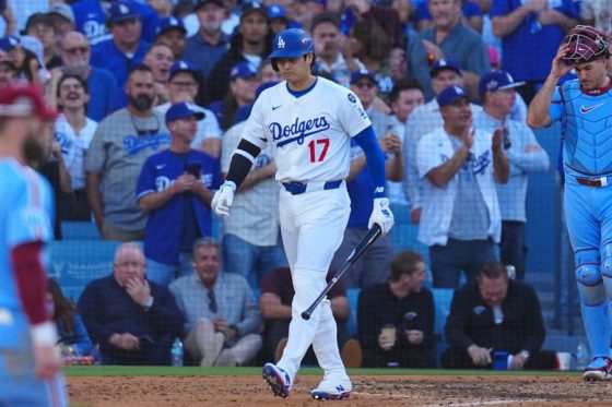 ドジャース・大谷翔平投手は9日(日本時間10日)、本拠地でフィリーズとの地区シリーズ第4戦に「1番・指名打者」で先発出場。7回2死二、三塁の好機で申告敬遠を受けた。